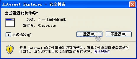 第一步:點擊下載六一兒童網桌面版,請點擊“運行”